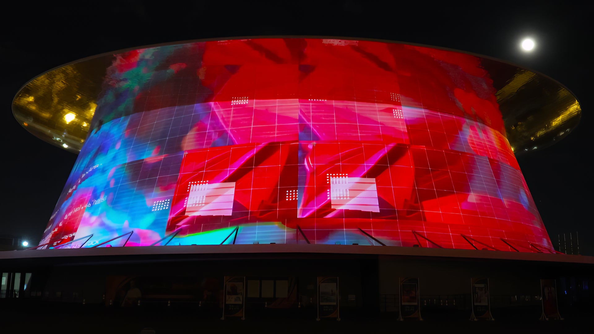 AI animation mapped onto the main exhibition hall structure